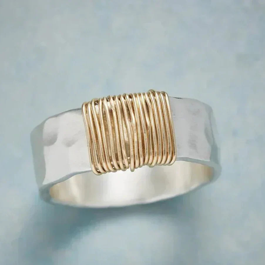 The Dulce ring showcases timeless sophistication with a unique blend of polished silver and delicately woven golden threads. Inspired by vintage artistry, this elegant piece offers a subtle contrast that elevates any look. Whether worn solo or stacked with your favorites, Dulce brings a graceful, refined charm to every ensemble.