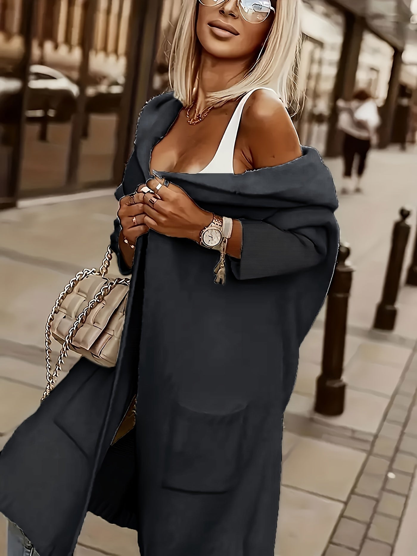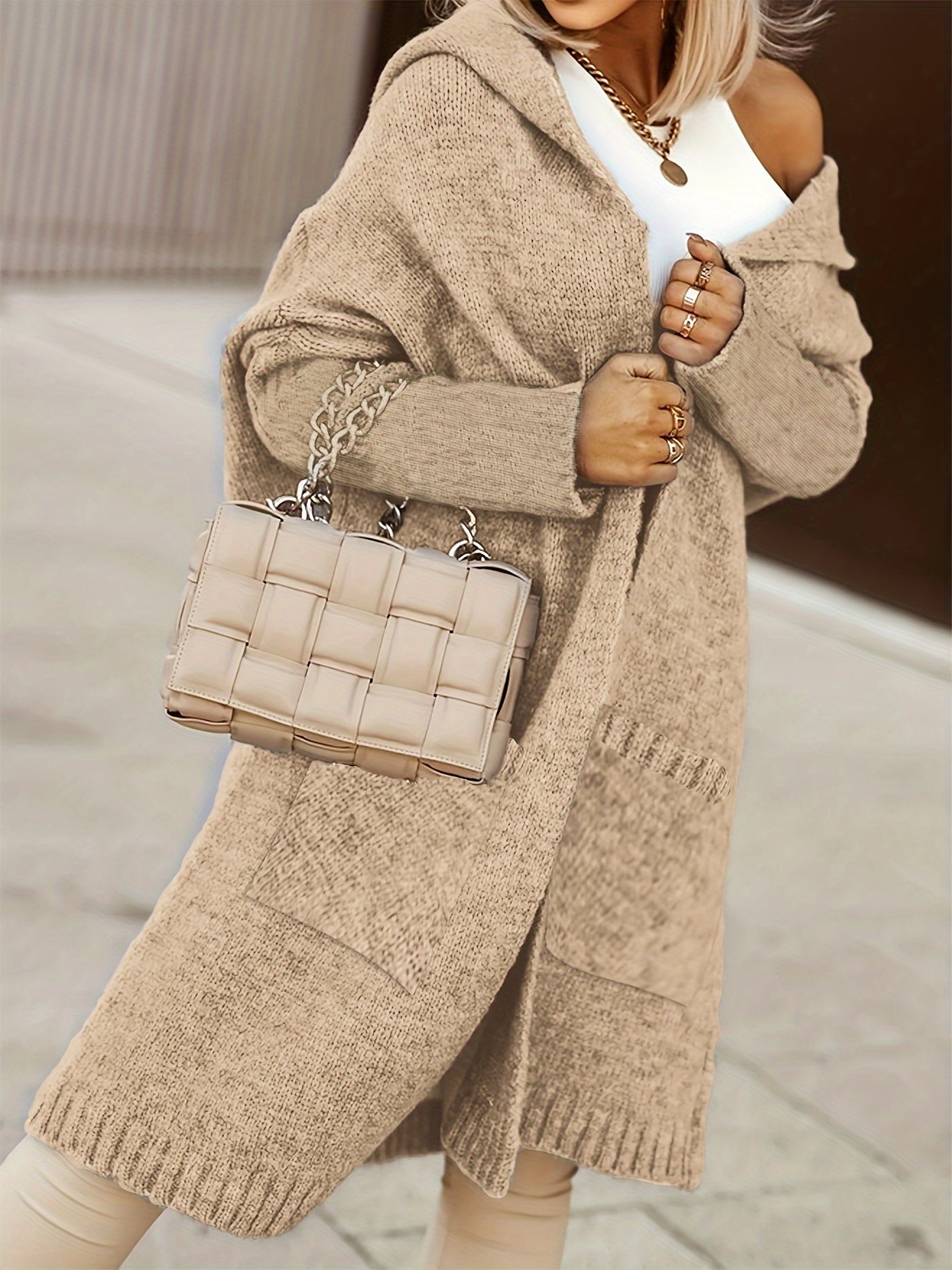 Cozy and stylish, this hooded knit cardigan features a V-neckline, long sleeves, and a playful alphabet pattern. Designed with practical pockets and a relaxed fit, it’s an ideal layering piece for fall and winter—combining comfort with casual elegance.