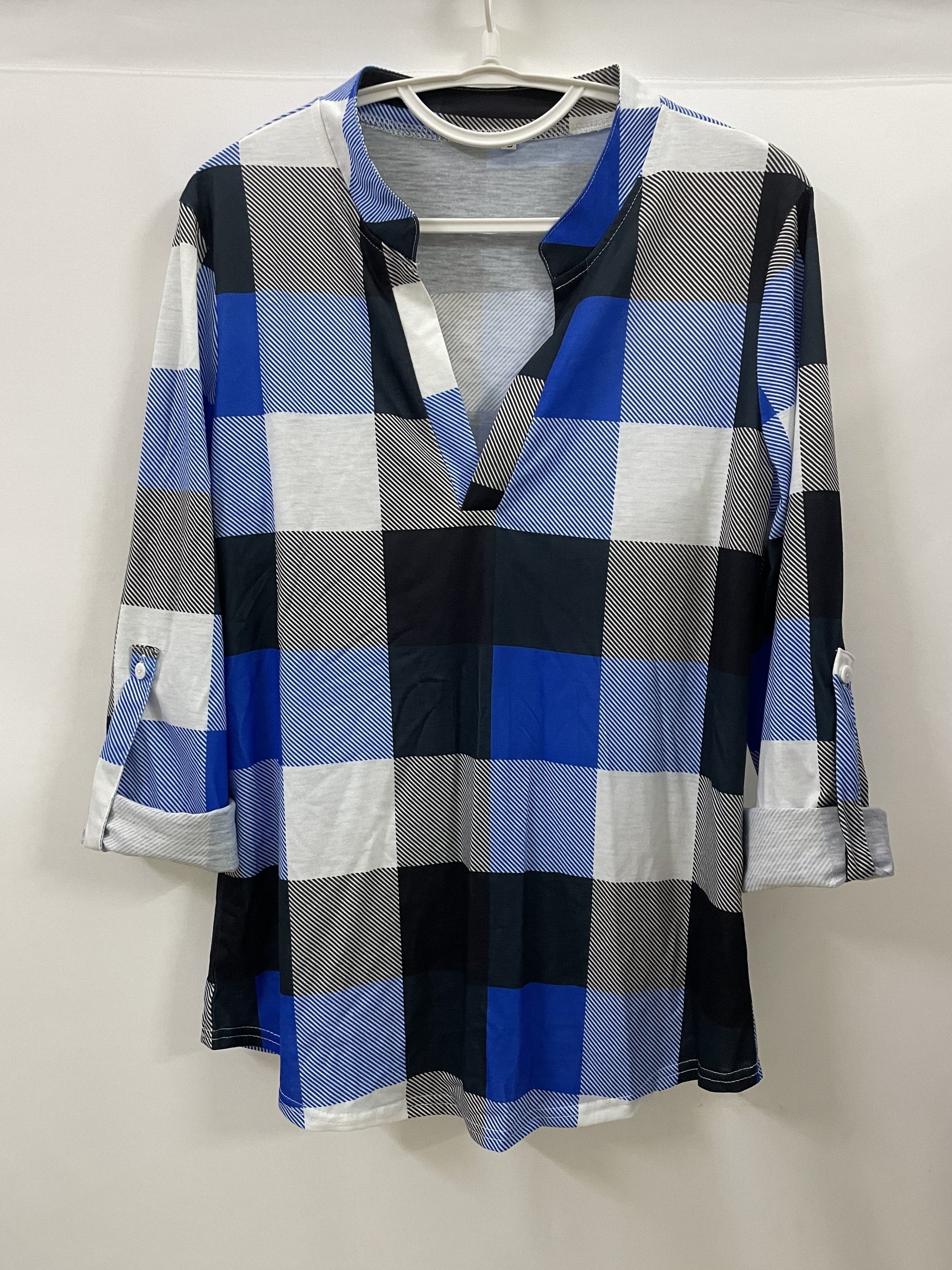 Designed for everyday comfort, this plaid V-neck shirt features a relaxed tunic silhouette with a flared hem and long sleeves. Perfect for spring and fall, it combines casual charm with a flattering fit—ideal for weekend outings or laid-back weekdays.
